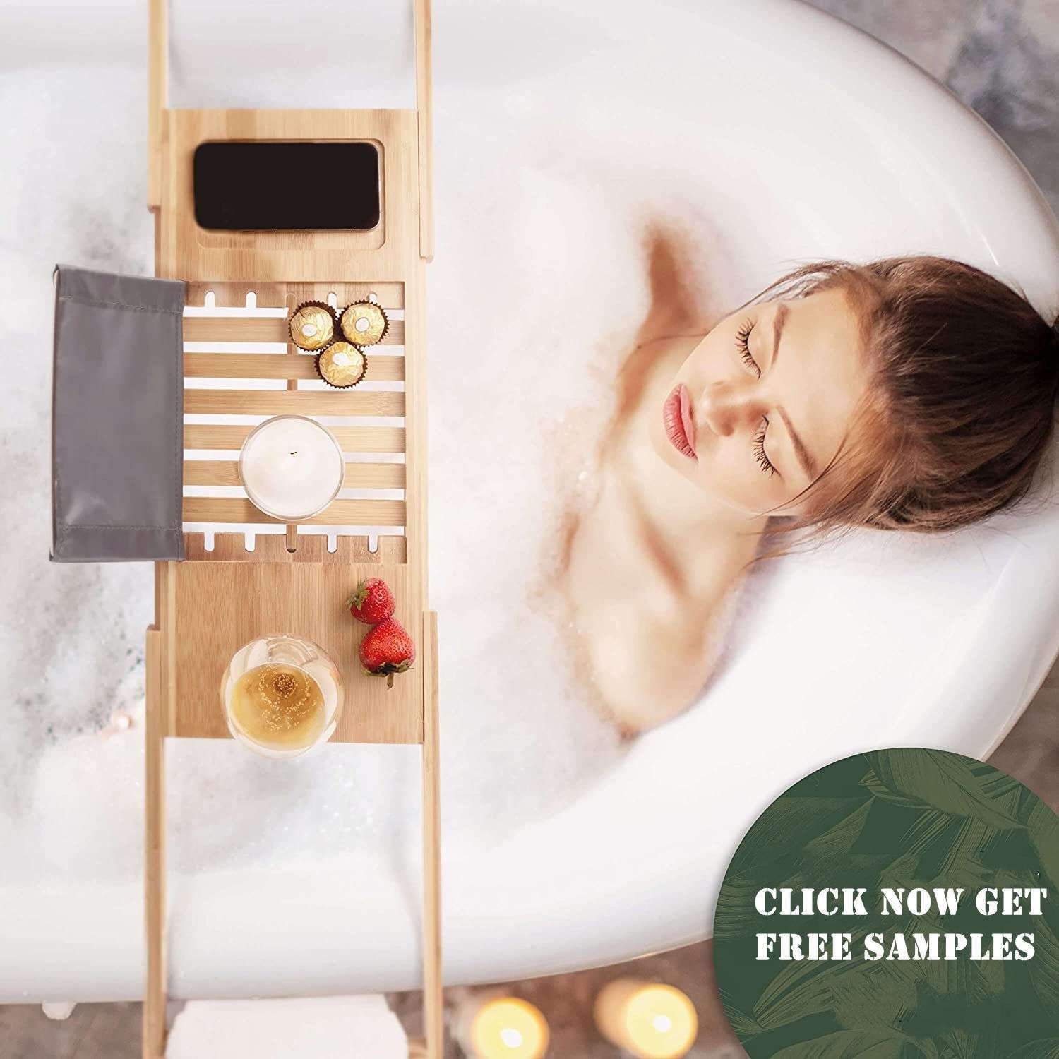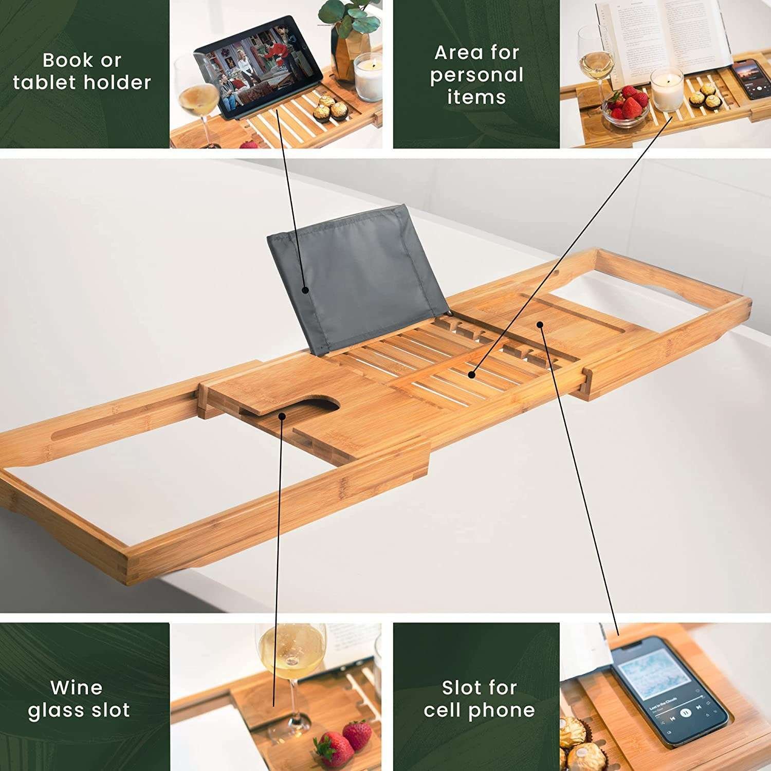 Wholesale Extendable Bamboo Wood Bathtub Tray with Adjustable Reading Rack for Book Bath Caddy Bamboo Tray