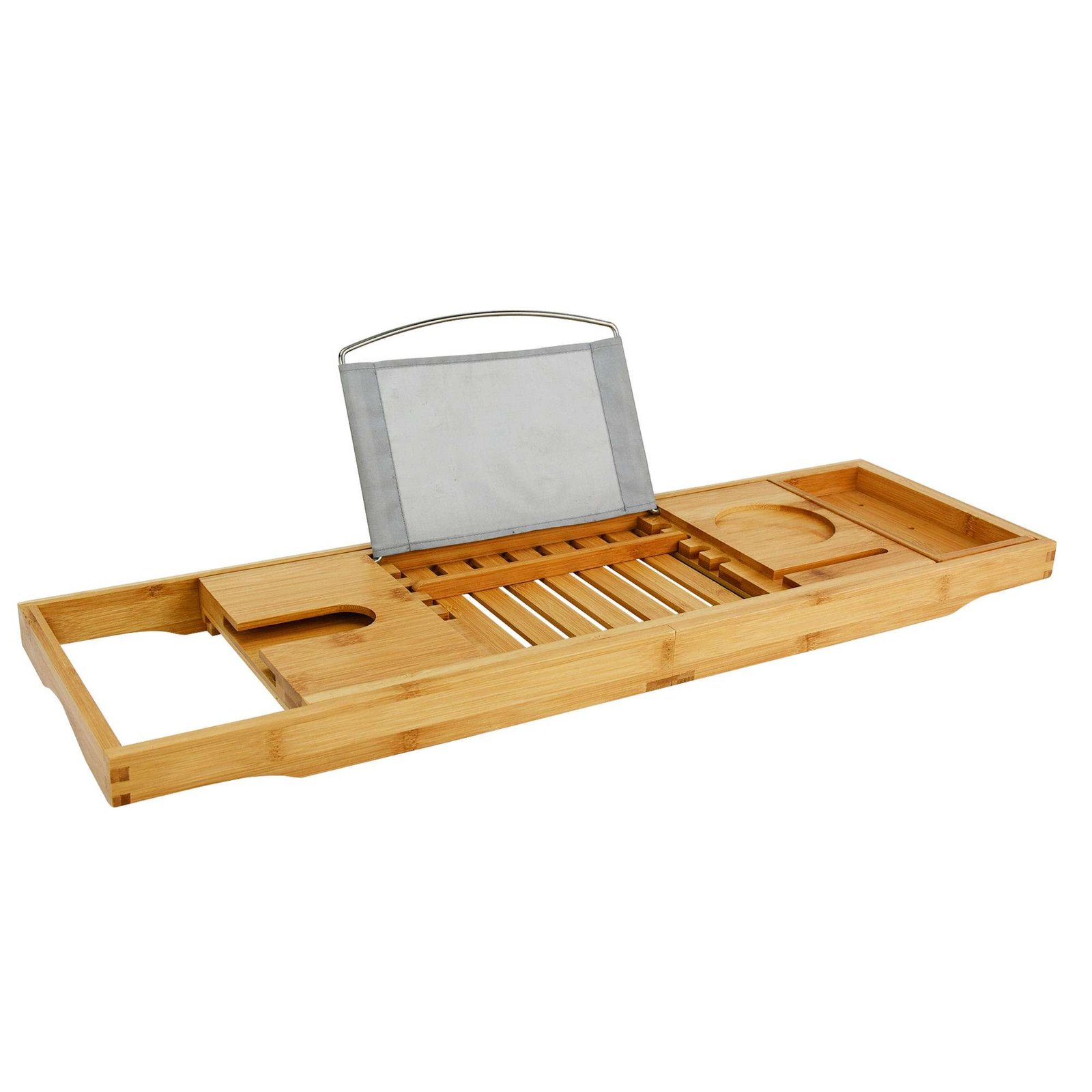 Eco-friendly Bamboo Bathtub Tray Luxury Expandable Laptop and Book Holder Foldable for Any Bathroom Use