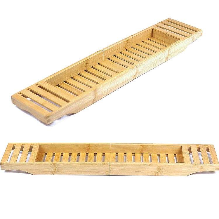 Wholesale Simple Bamboo Folding Bathtub Tray Caddy Hotel Bathroom Accessories Organizer Natural Wood Bath Tray
