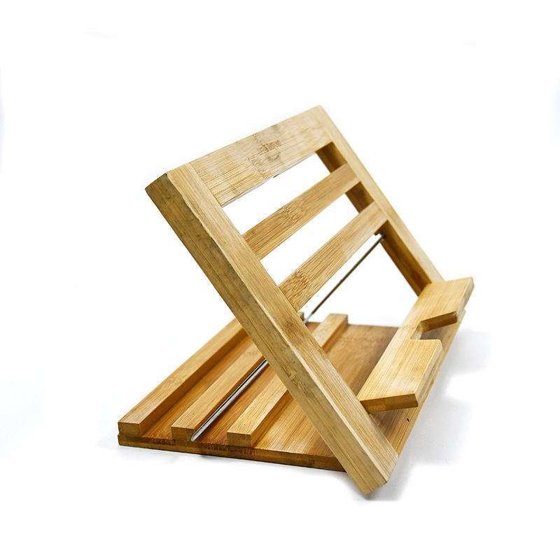 Wholesale Portable Foldable Bamboo Cookbook Holder with Sturdy Reading Stand Metal Bookend for Home Office Use