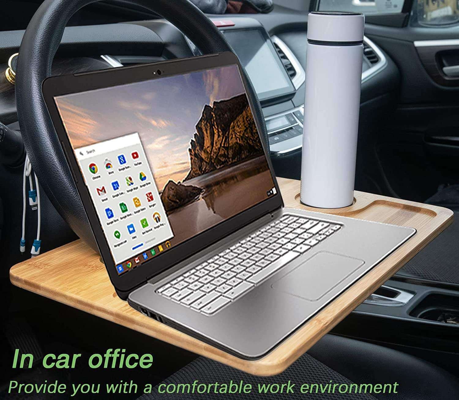 Bamboo Steering Wheel Tray Car Steering Wheel Tray Table Double-Sided Auto Steering Wheel