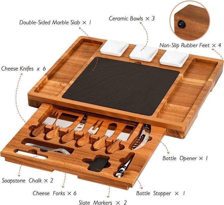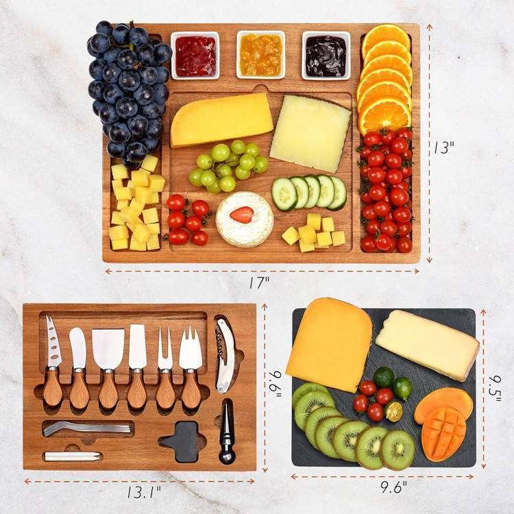 Custom Wholesale Premium Wooden Cheese Boards Knife Set Serving Tray Slate Acacia Wood Charcuterie Board