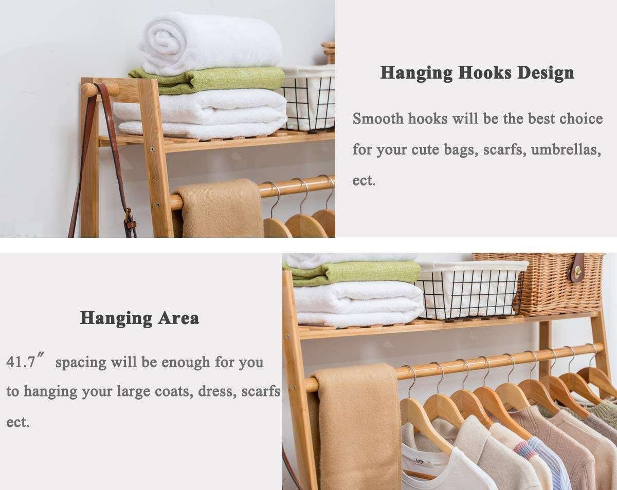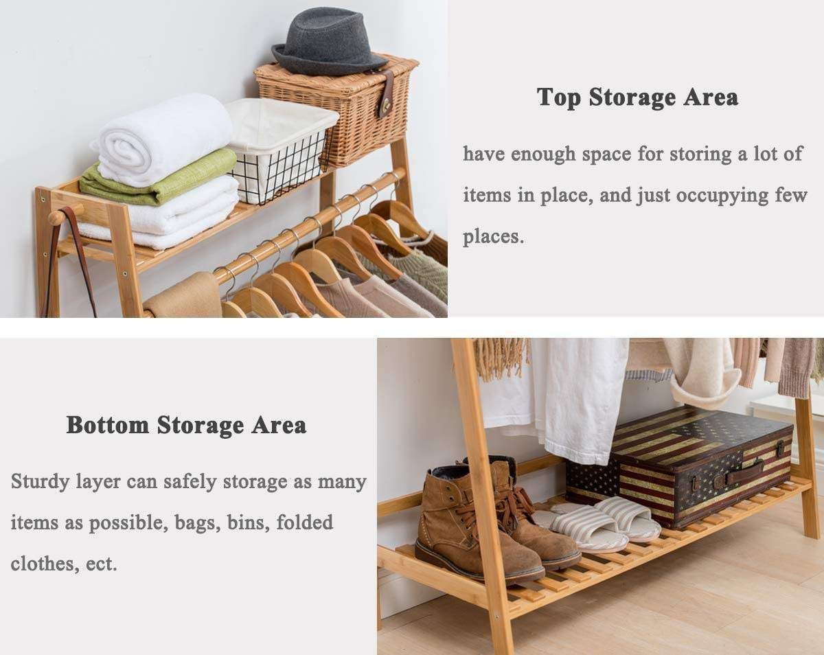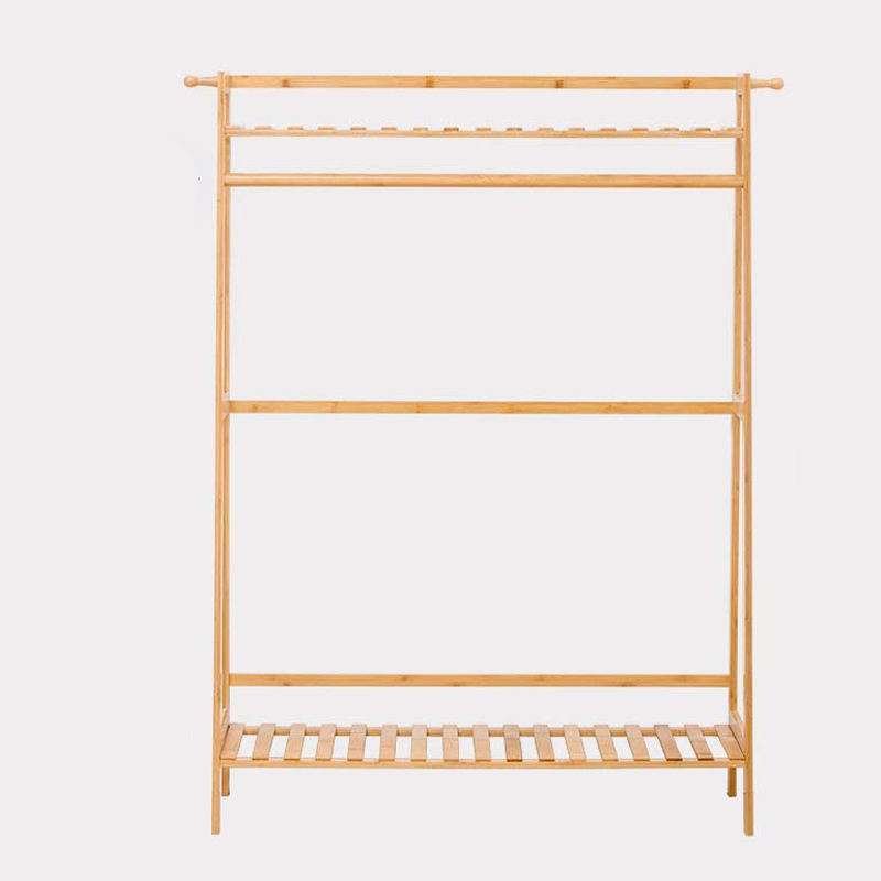 Bamboo Garment Coat Clothes Hanging Heavy Duty Rack with top Shelf and Shoe Clothing Storage Racks Organizer Shelves wholesale