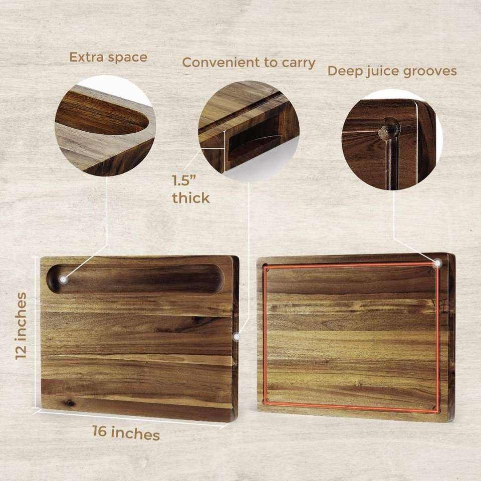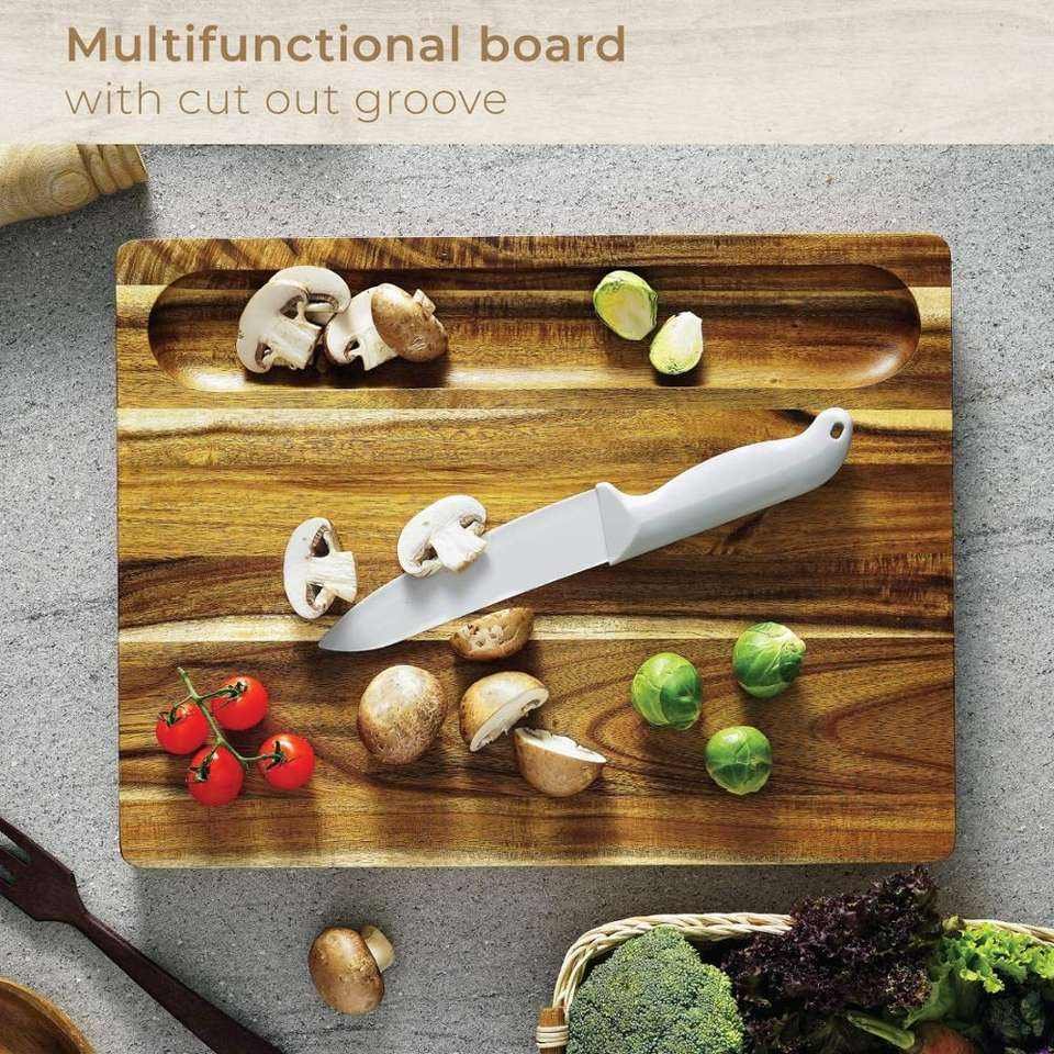 Custom Kitchen Double Use Acacia Chopping Block Fruit Cheese Seving Large Rectangular Solid Wood Cutting Board