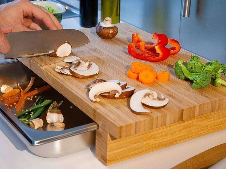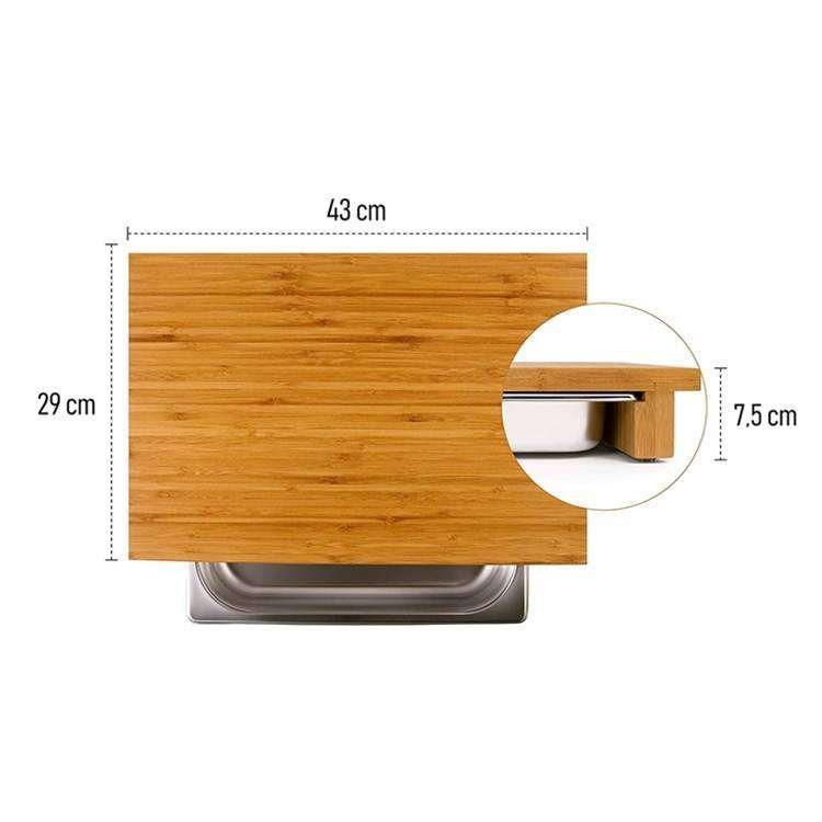 Custom Kitchen Extra Large Bamboo Chopping Board Kitchen Rectangle Wood Cutting Board With Sliding Stainless Steel Tray