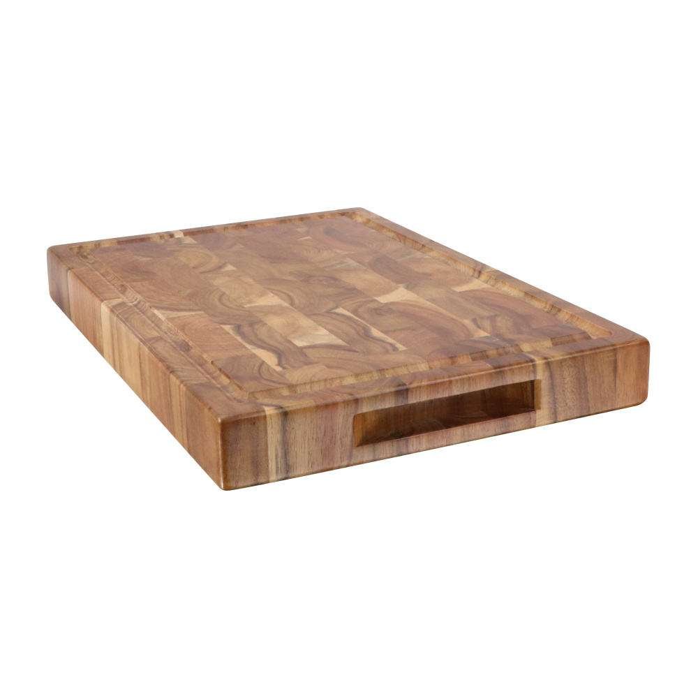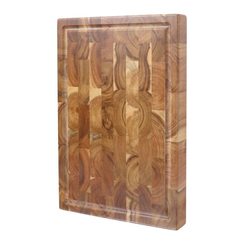 Thick end grain soild butcher cutting board acacia wood chopping block with hand grip
