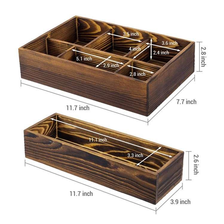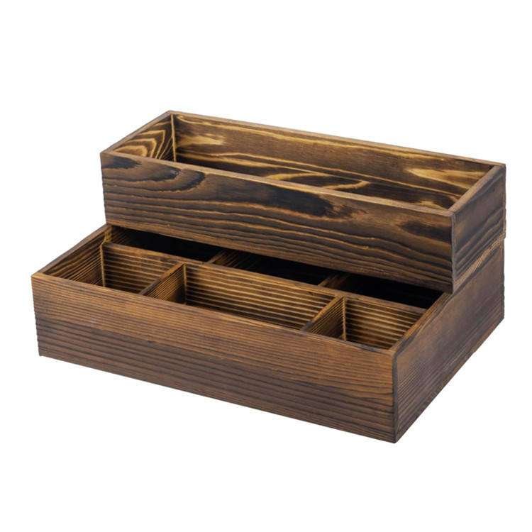 Desktop Stackable Modular Vanity Makeup Storage Organizer 2 Tier Rustic Solid Wood Cosmetic Box For Bathroom Countertop