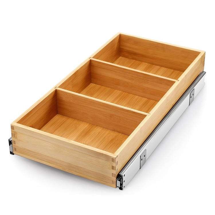 Sliding Gliding Cupboard Shelf Bamboo Storage Spice Rack Drawer Organizer Wooden Pull Out Cabinet Tray For Kitchen