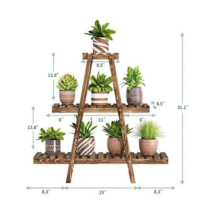 Outdoor Triangular Ladder Flower Holder 3-Tier Foldable Display Shelf Rack Garden Wooden Chinese Plant Stand