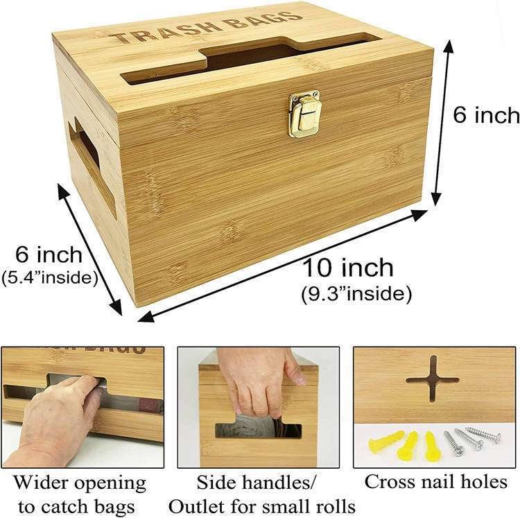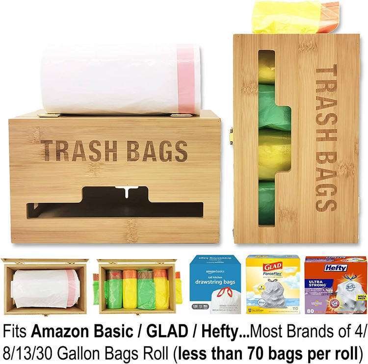 Kitchen Countertop Garbage Bag Organizer Wall Mounted Bamboo Plastic Trash Bag Dispenser Roll Holder With Handle