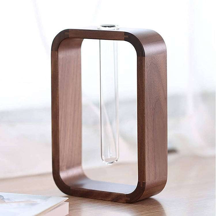 Hydrophilic Plants Stand Tabletop Water Planting Propagation Stations Decor Glass Tube Flowers Vase With Wooden Stand
