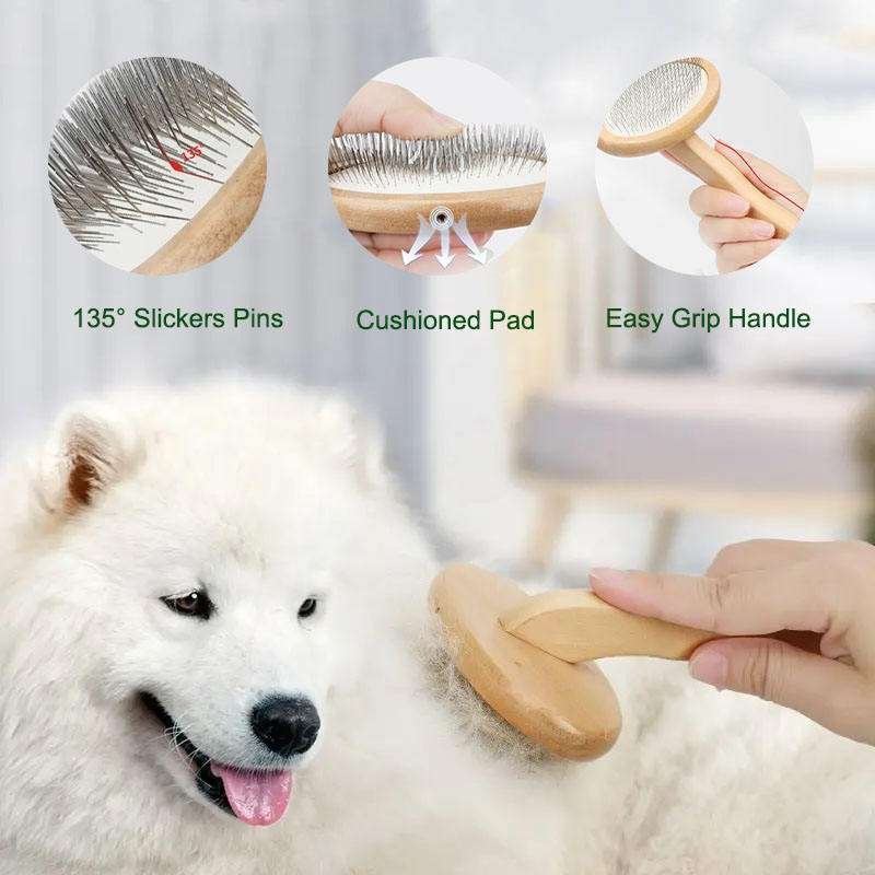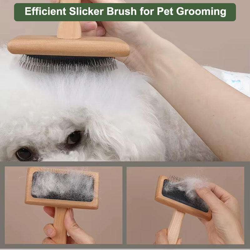 Wholesale Cat Brushing Shedding Brush Dog Elegant Grooming Comb Pet Slicker Brush with Grass Tree Wooden Handle