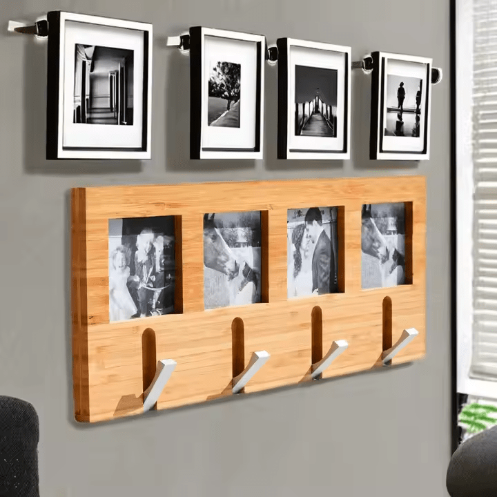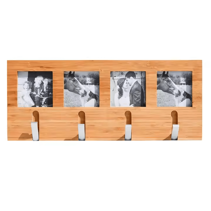 Wall Mounted Bamboo Wood Customized Photo Design Foldable 5 Hooks Rail Clothes Hat Ectryway Coat Storage Rack for Living Room