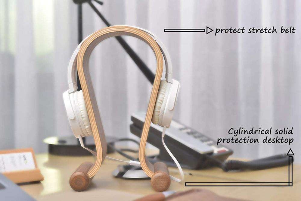 Custom Desktop Universal Wood Headphone Stand Hanger U Shaped Mount Display Walnut Wooden Headset Holder For Gaming