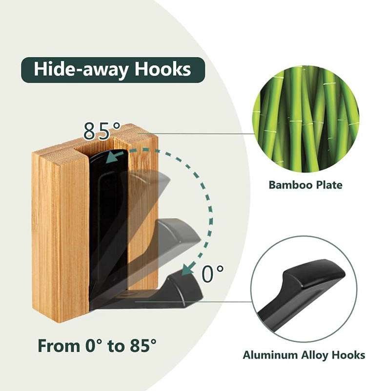 Modern Home Dector Wooden Clothing Hanger Entryway Customized Size Bamboo Wall Mounted Coat Rack With Retractable Hooks