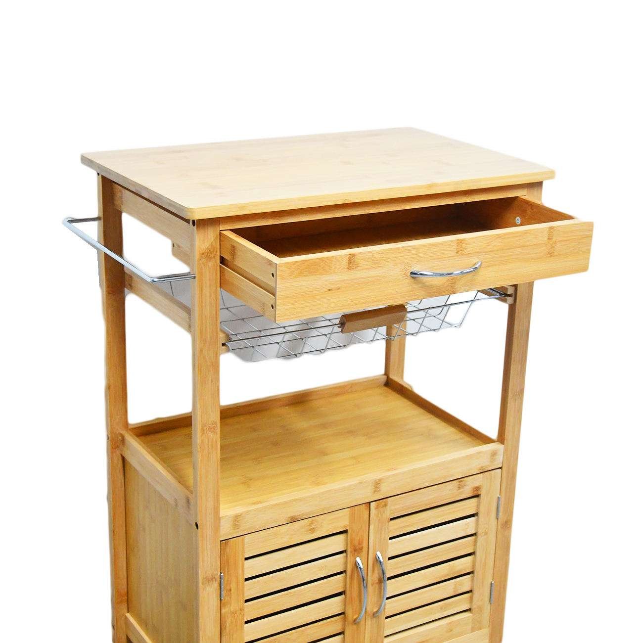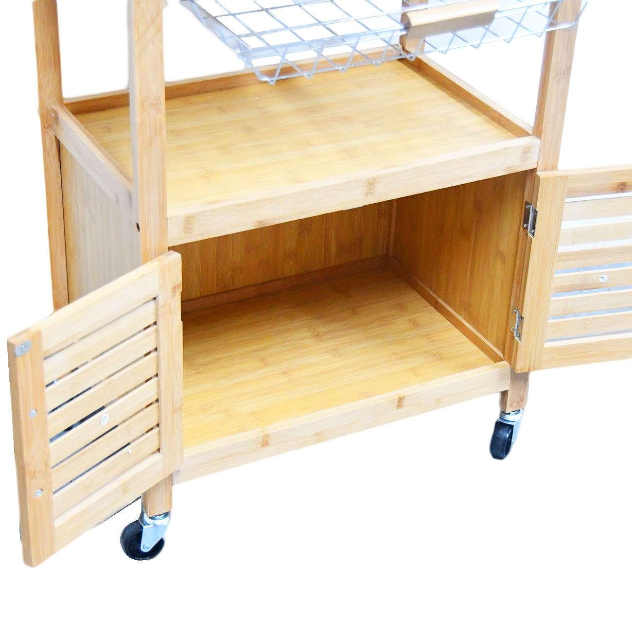 Natural bamboo Kitchen Serving trolley with 4 wheels