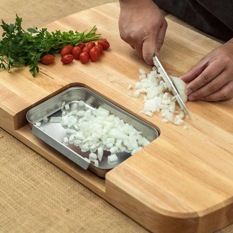 Kitchen Large Chopping Block Reversible Maple Wood Cutting Board With Juice Grooves And Stainless Steel Tray