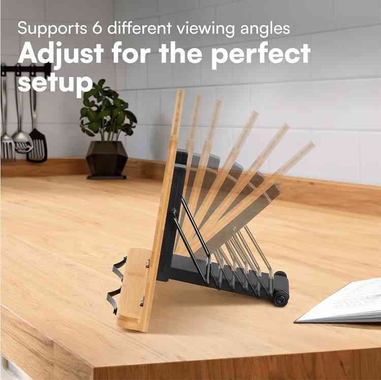 Kitchen Adjustable Wood Recipe Book Rack Bamboo Foldable Portable Multi-Use Book Holder Reading Stand