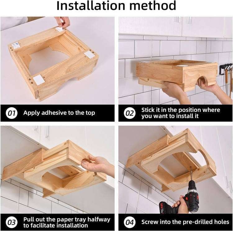 Under Cabinet Wood 10 Inch Plate Holders Wall Mount Vertical Paper Plate Dispenser For Kitchen Counter
