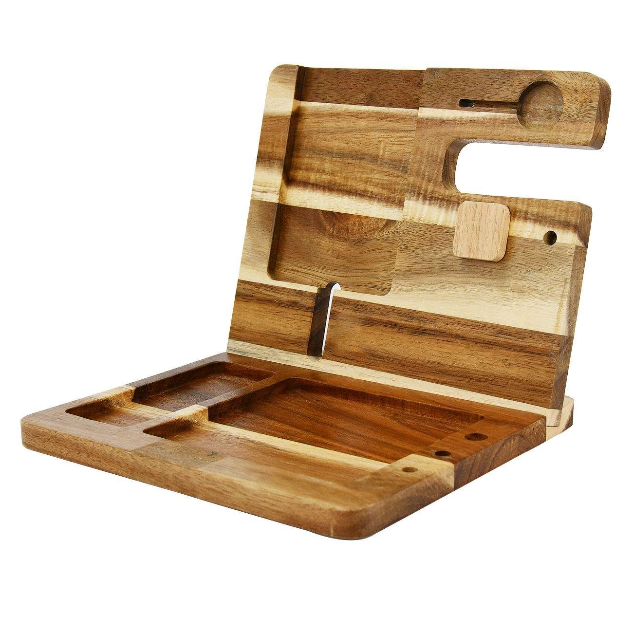 Phone Holder Docking Station Acacia Wood Office Accessories Organizer Desk for Home Office