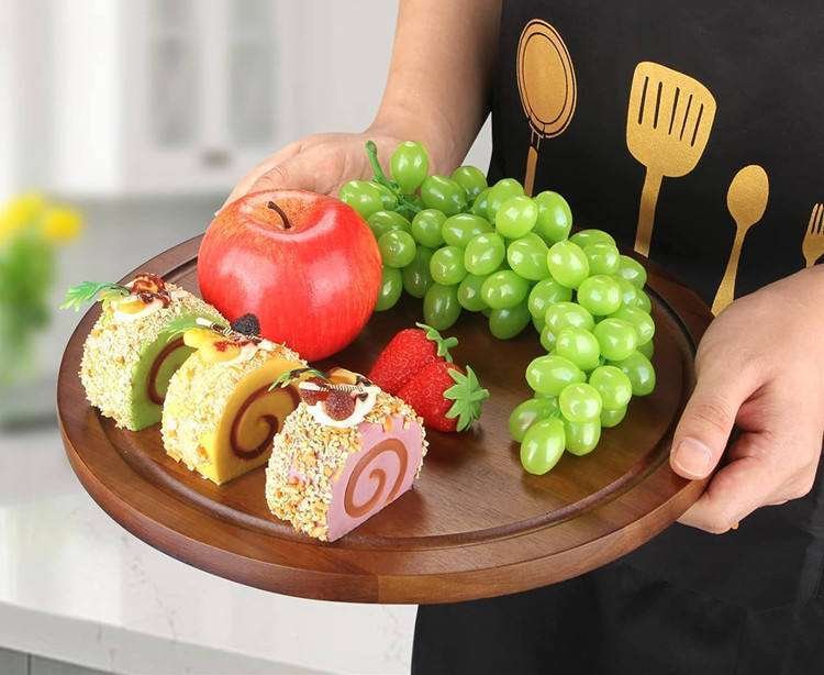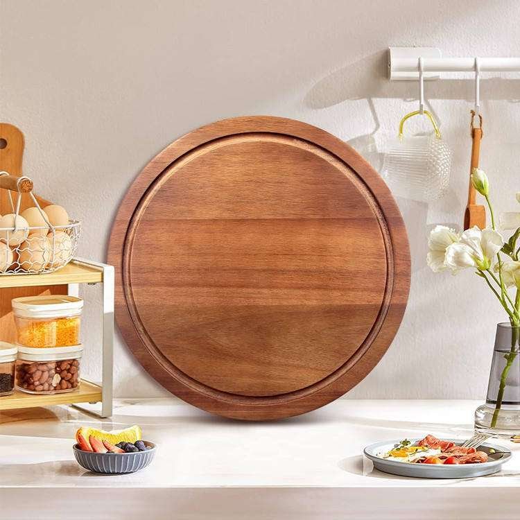 Circular Acacia Cutting Blocks Multipurpose Charcuterie Pizza Cheese Serving Platter Blank Wooden Round Chopping Board