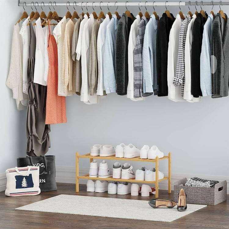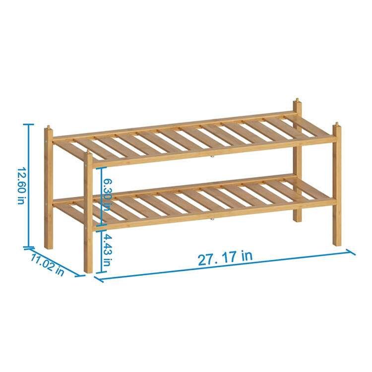 Boutique Wooden Shoe Rack Shelf 2 Tier Bamboo Stackable Shoe Storage Organizer For Living Room Entryway Hallway Closet