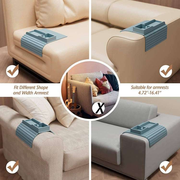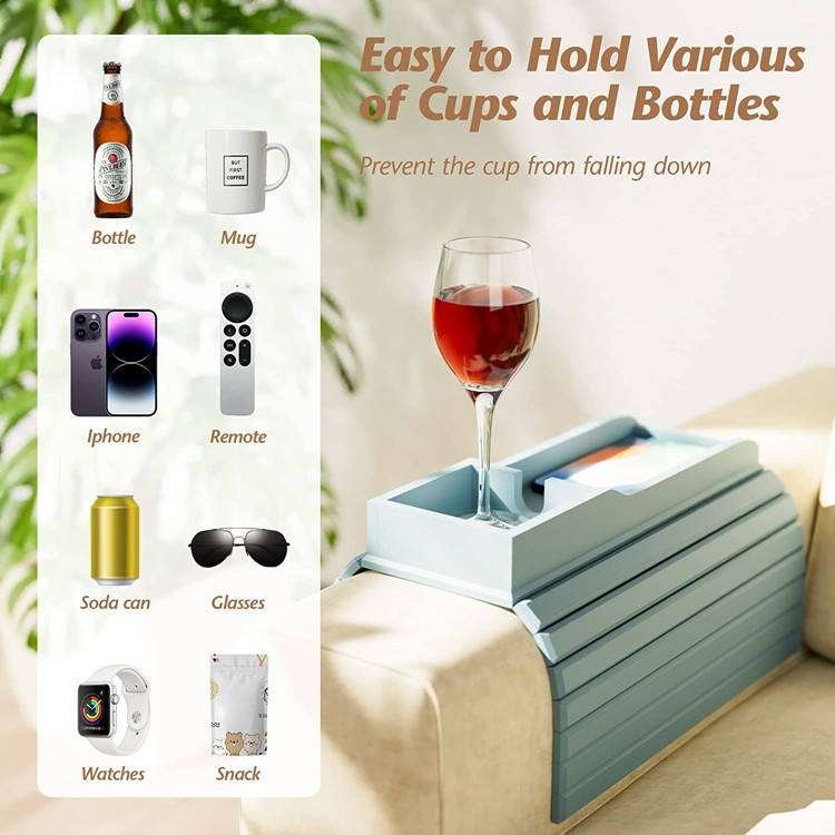 Clip On Table Couch Arm Coaster Drinks Cup Snack Holder Foldable Bamboo Sofa Armrest Tray With Removable Tray