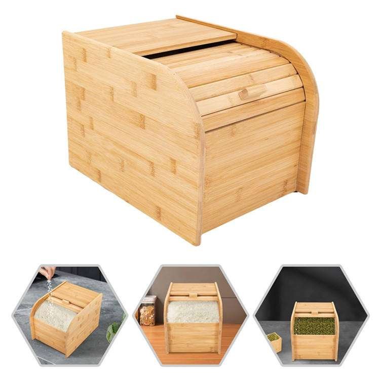 Custom Wooden Large Dry Cereal Dispenser Box Flour Bucket Bamboo Rice Storage Container With Sliding Lid
