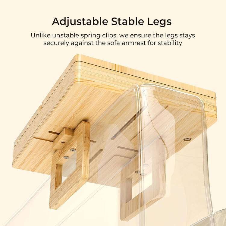 Wholesale Bamboo Couch Arm 2 Rotatable Tray Adjustable Phone Holder Sofa Arm Clip Table With Storage Box