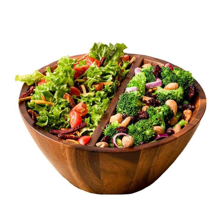Bol En Bois Wholesale Large Acacia Wooden Fruit Bowl Snack Food Serveware Divided Wood Salads Bowls For Kitchen Countertop