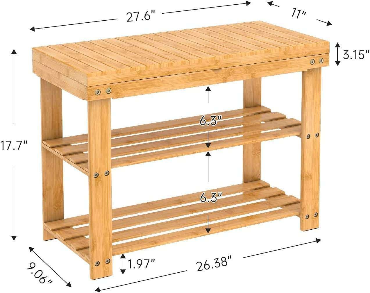 Bamboo Shoe Rack Wood Bench with Storage Shelf for Entryway Small Space Organizer Indoor Outdoor Use