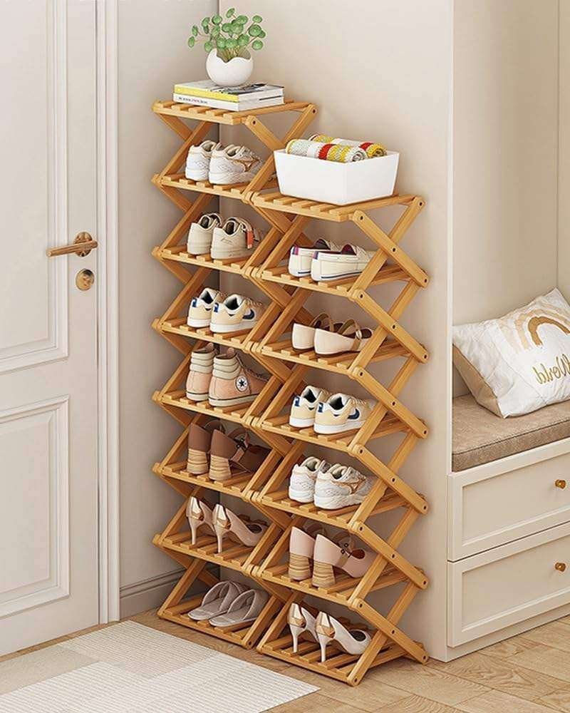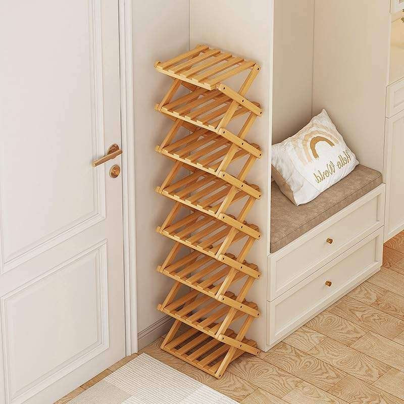 Narrow Shoe Rack Shoe Storage Organiser Vertical Bamboo Folding Shoes Shelf for Entryway Closet Bedroom Hallway