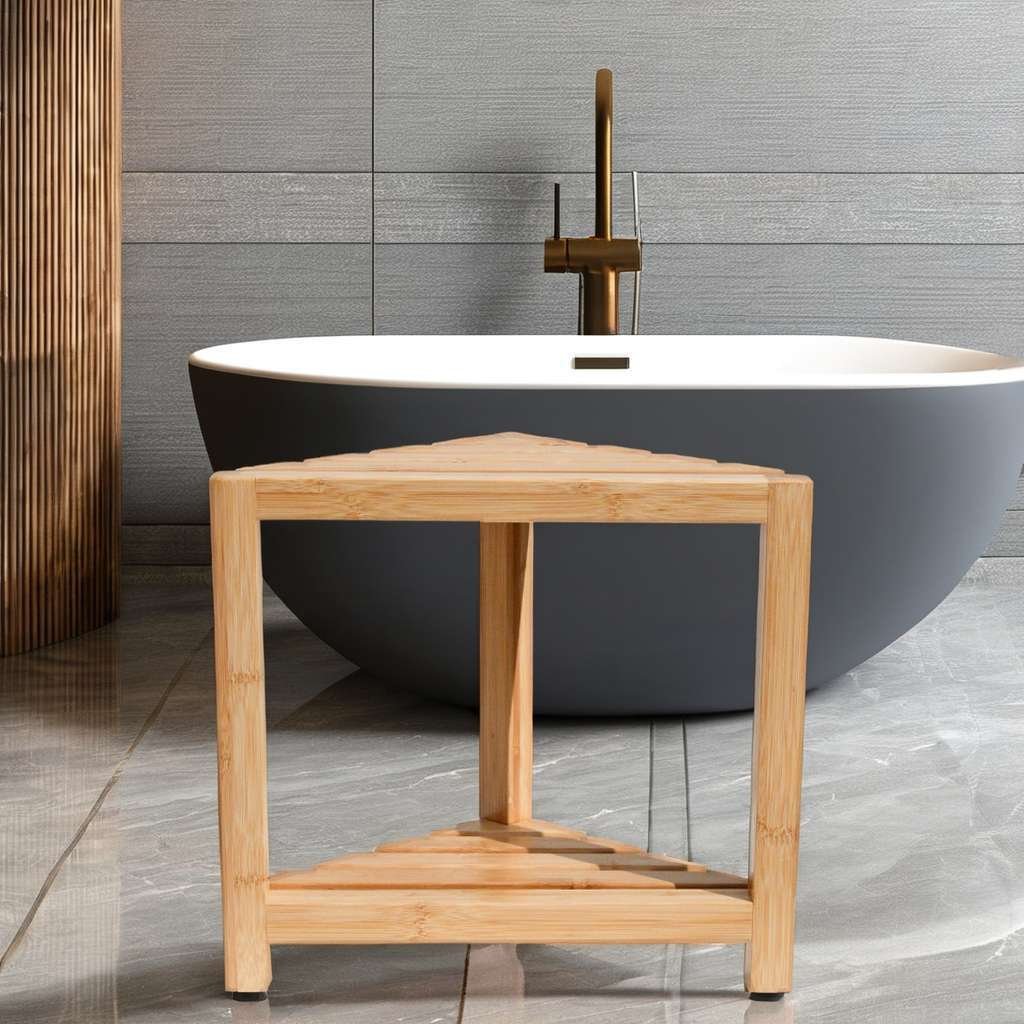 Luxury Corner Beautiful Teak Storage Shelf Bamboo Wood Step Seat Bench Shower Stool And Foot Rest for Shaving Legs Bedroom