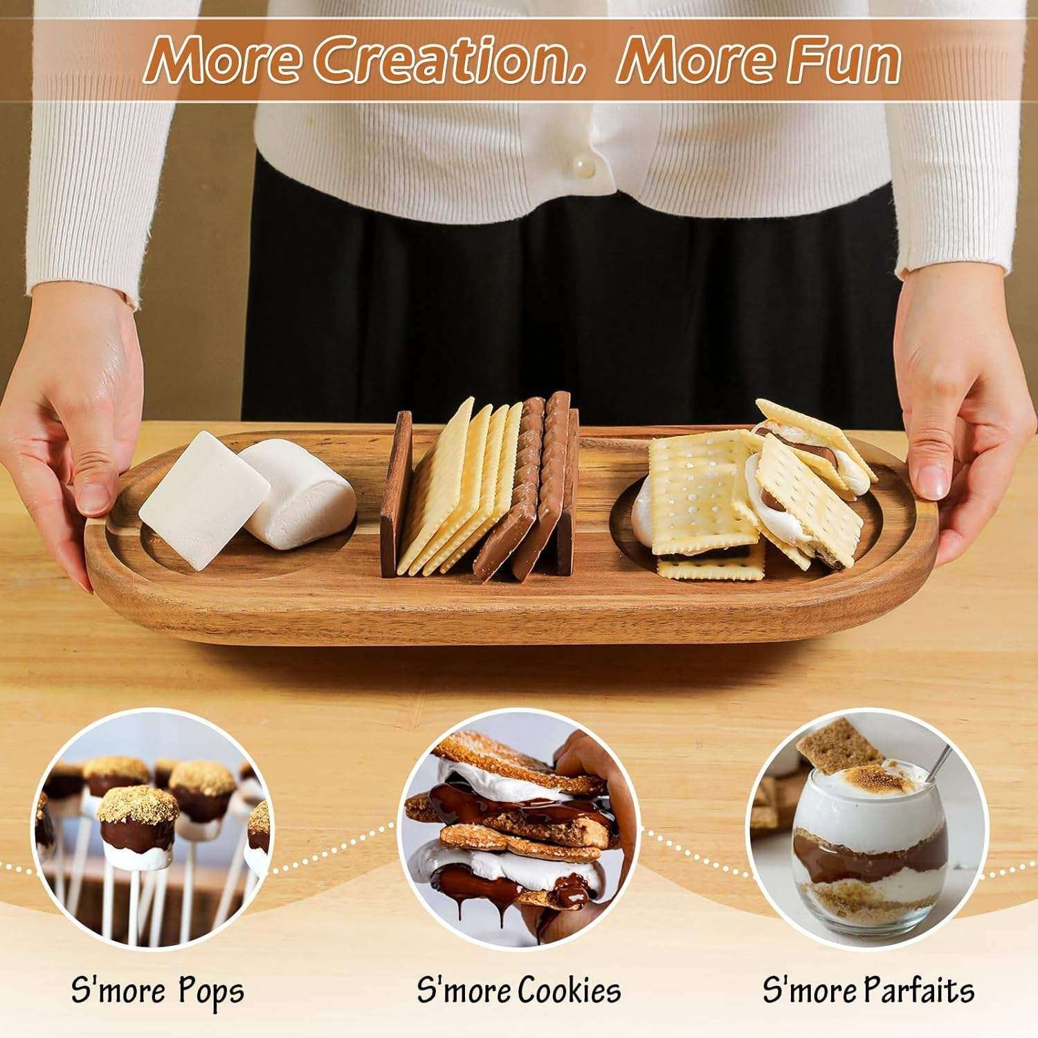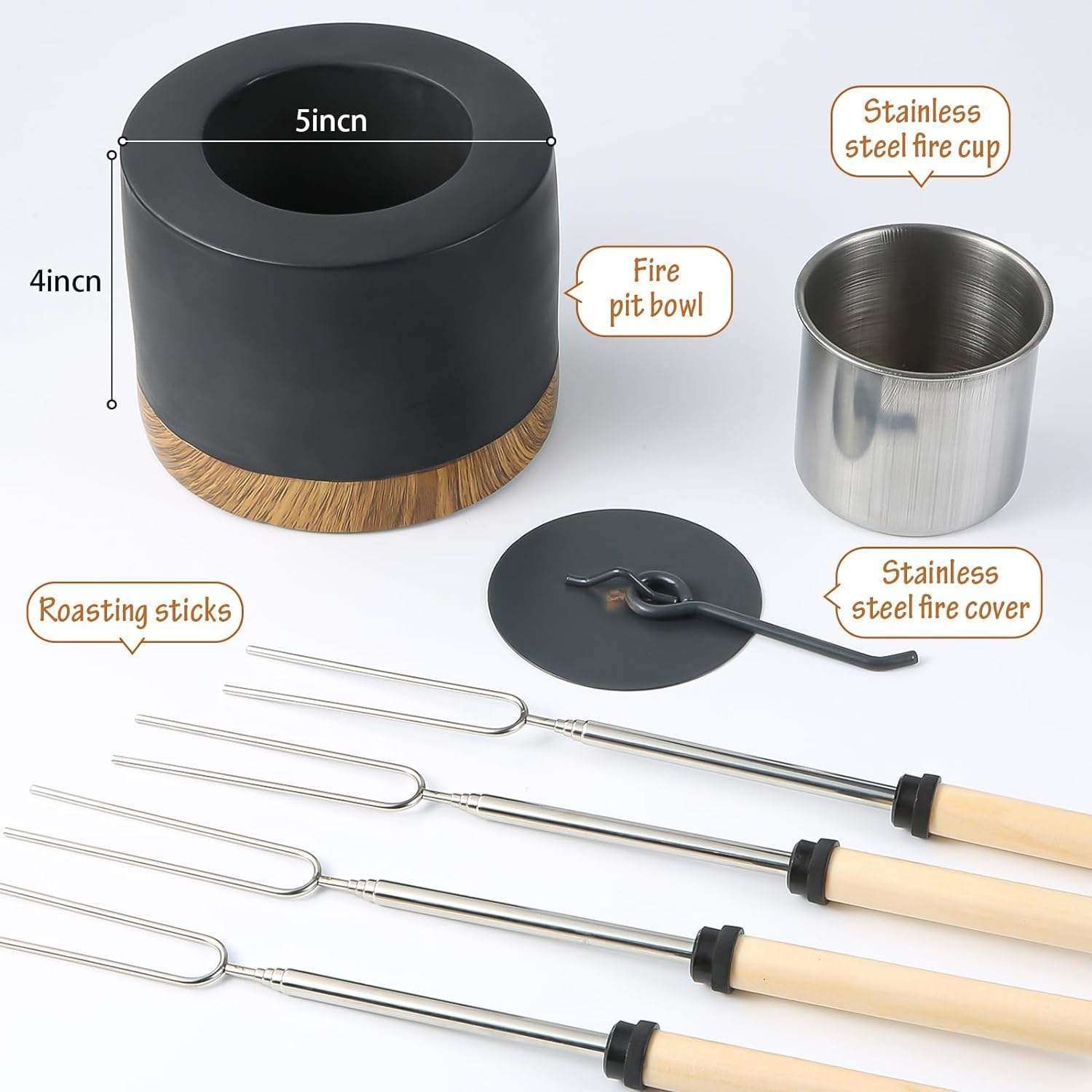 Indoor Smores Kit with 4 Roasting Sticks,Tabletop Smores Maker with Acacia Wood Tray,Tabletop smores firepit with Fire Pit Bowl