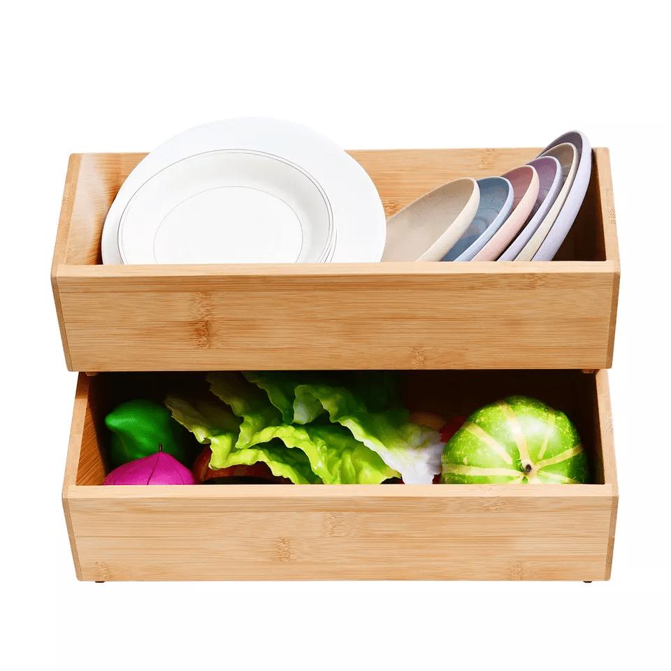 Bamboo Stackable Food Storage Organization Bin Basket Drawer Organizer Crate Boxes with Handles for Kitchen Pantry