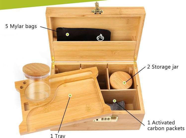 Custom Bamboo Wooden Herb Stash Box With Rolling Tray Storage Container For Store Smoking Accessories Grinder Pipe Papers
