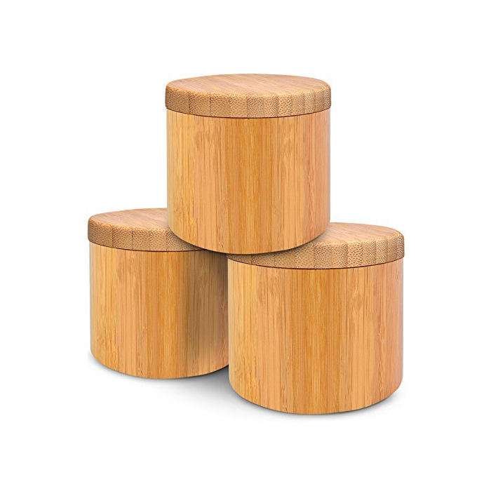 Wholesale Natural Wooden Portable Round Small Bamboo Spice Salt Box With Magnetic Lid