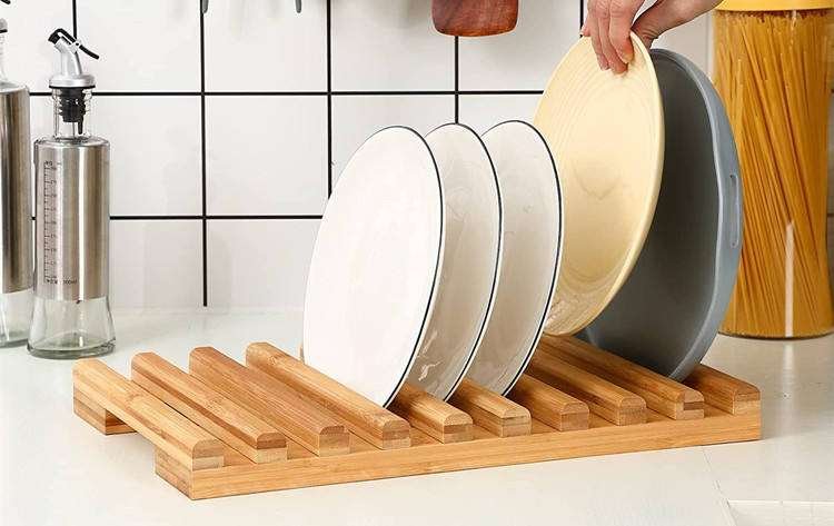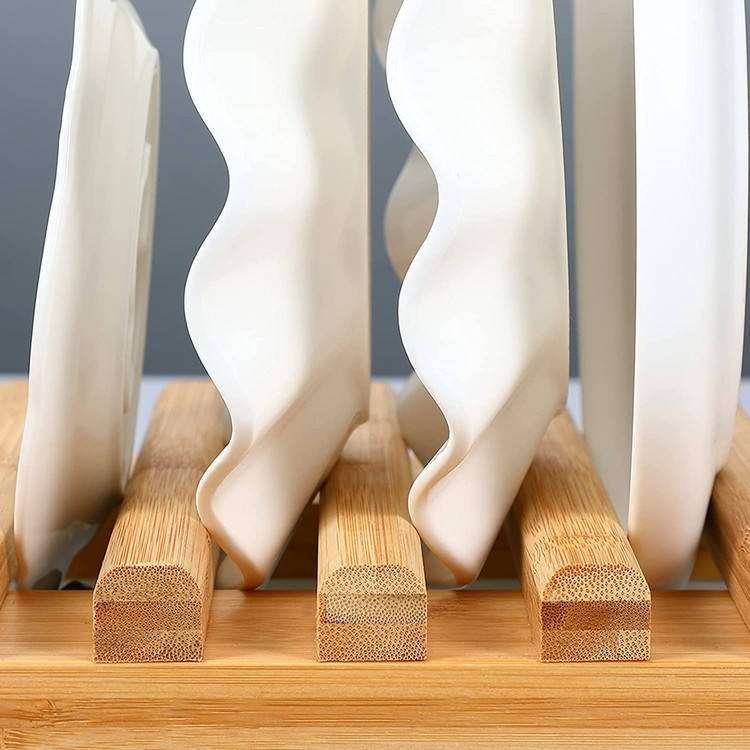 Pantry Cabinet 9 Slots Wood Plate Display Organizer Bamboo Dish Rack Kitchen Dish Drying Rack With Drainboard