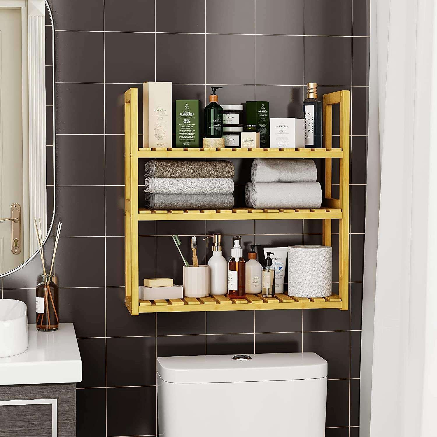 3 Tiers Bamboo Kitchen Towel Paper Holder Bathroom Corner Shelf Rack Wall Mounted Bathroom Shelf wholesale