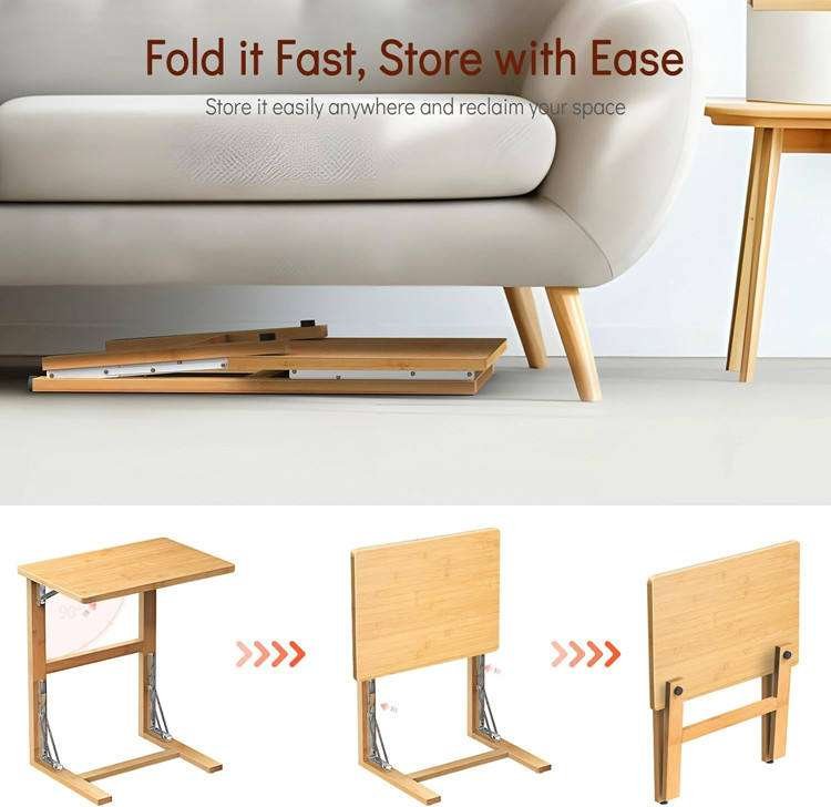Farmhouse Small Folding Couch Desk Portable Bamboo Adjustable Sofa Side Tv Tray C-Shape End Table For Living Room wholesale