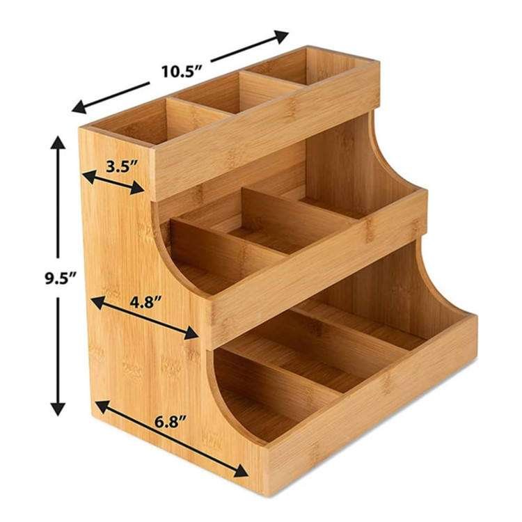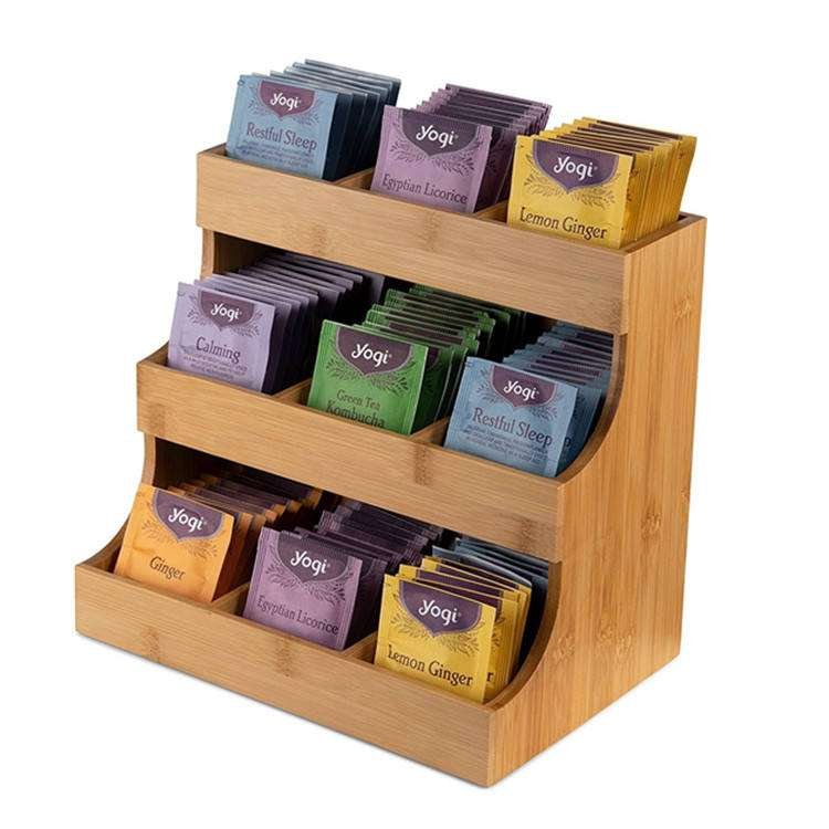 Home Office Vertical Sugar Packets Organizer Bin 3 Layer Bamboo Tea Bag Organizer Storage Box And Coffee Pod