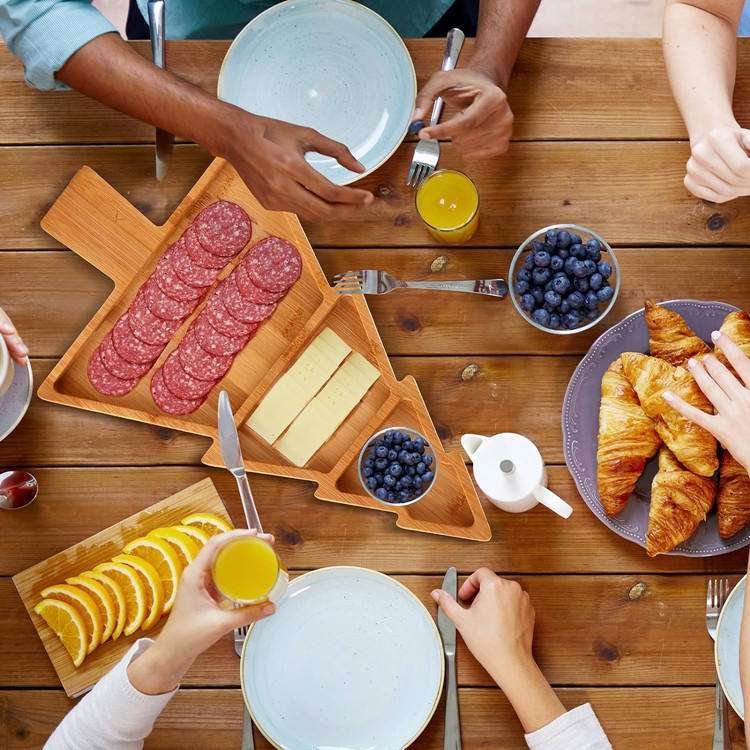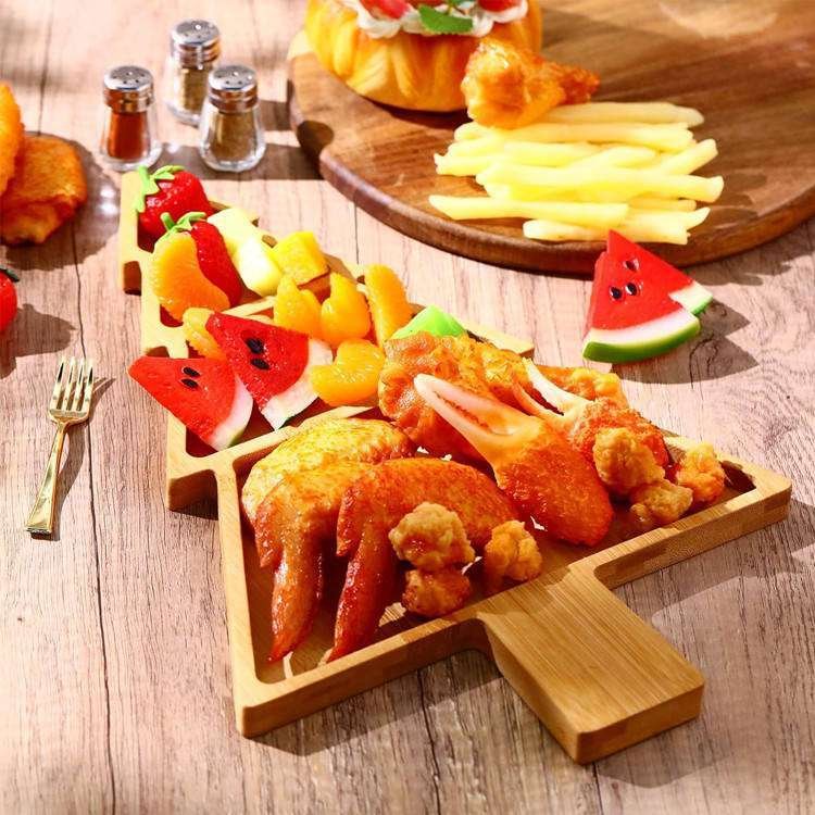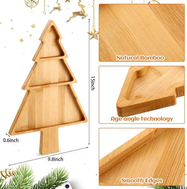 Food Grade Funny Wooden Tree Shaped Plate Display Fruit Bread Cheese Charcuterie Board Bamboo Christmas Serving Platter