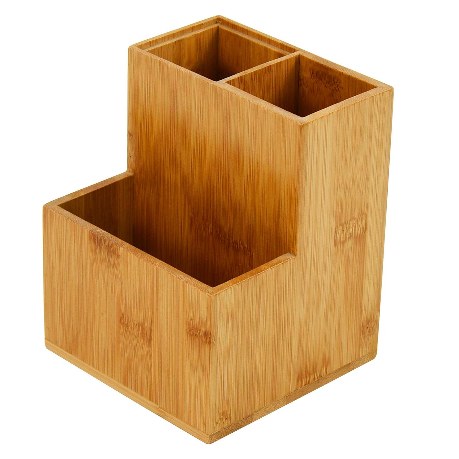 Wholesale Bamboo Kitchen Cooking Utensil Set with Holder Storage 2 Compartment Multipurpose Flatware Caddy for Spatulas and Spoons
