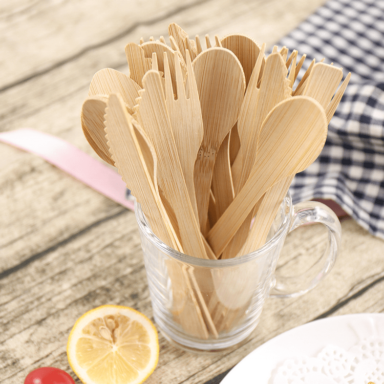 Fork Knife Spoon Utensils Travel Disposable Bamboo Wooden Cutlery