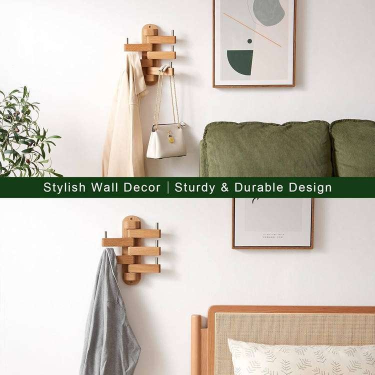 Home Decorative Swivel Coat Rack Hooks Natural Wood Wall Hook With 5 Foldable Arms For Bedroom Living Room Entryway