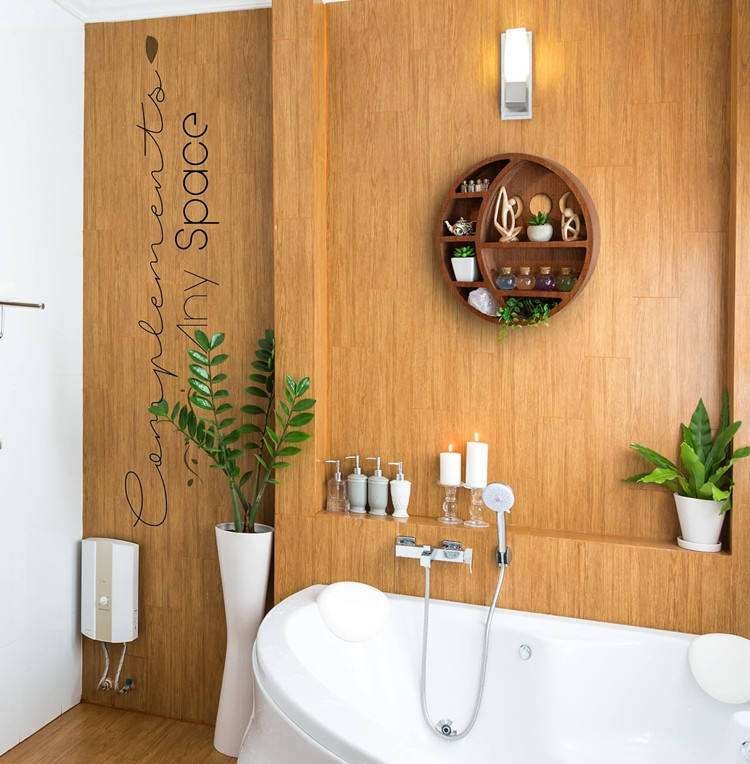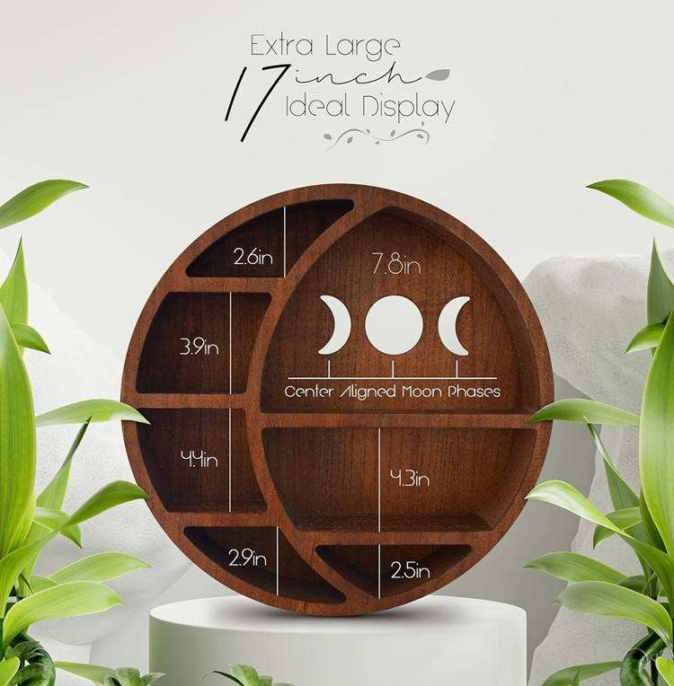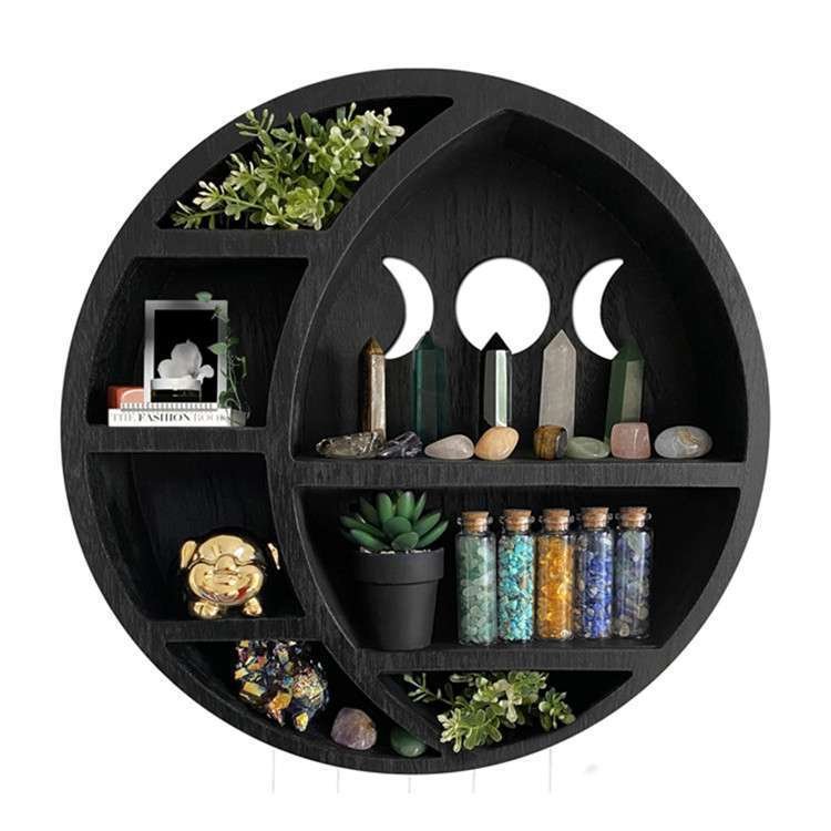 Home Decor Hanging Display Rack Rustic Wood Wall Moon Shelf Shelves For Stone Crystals And Essential Oils