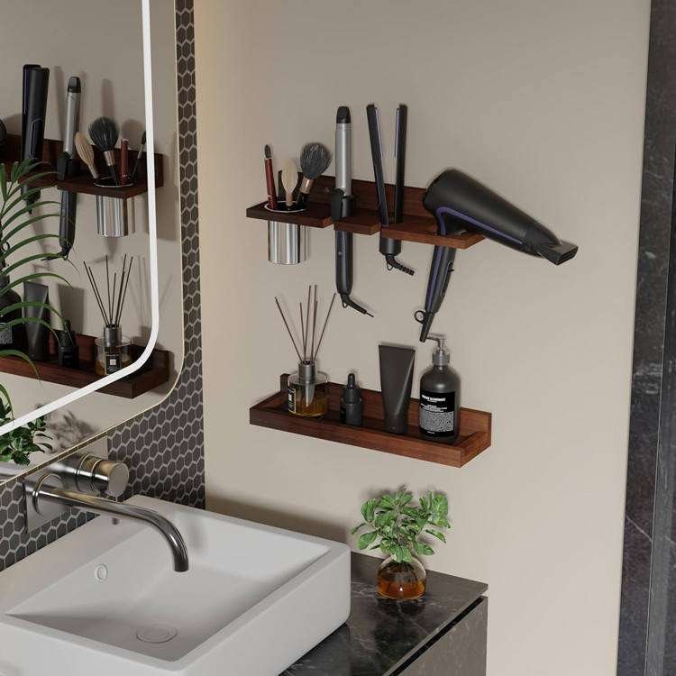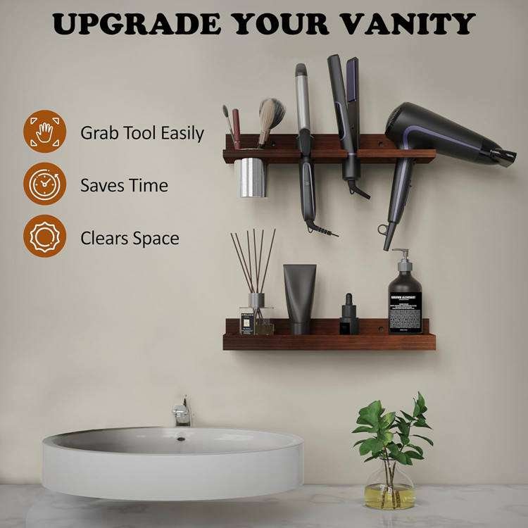 Over The Door Hair Tool Organizer Wall Mounted Set Of 2 Layer Wooden Blow Dryer Holder Heat Curling Iron Storage