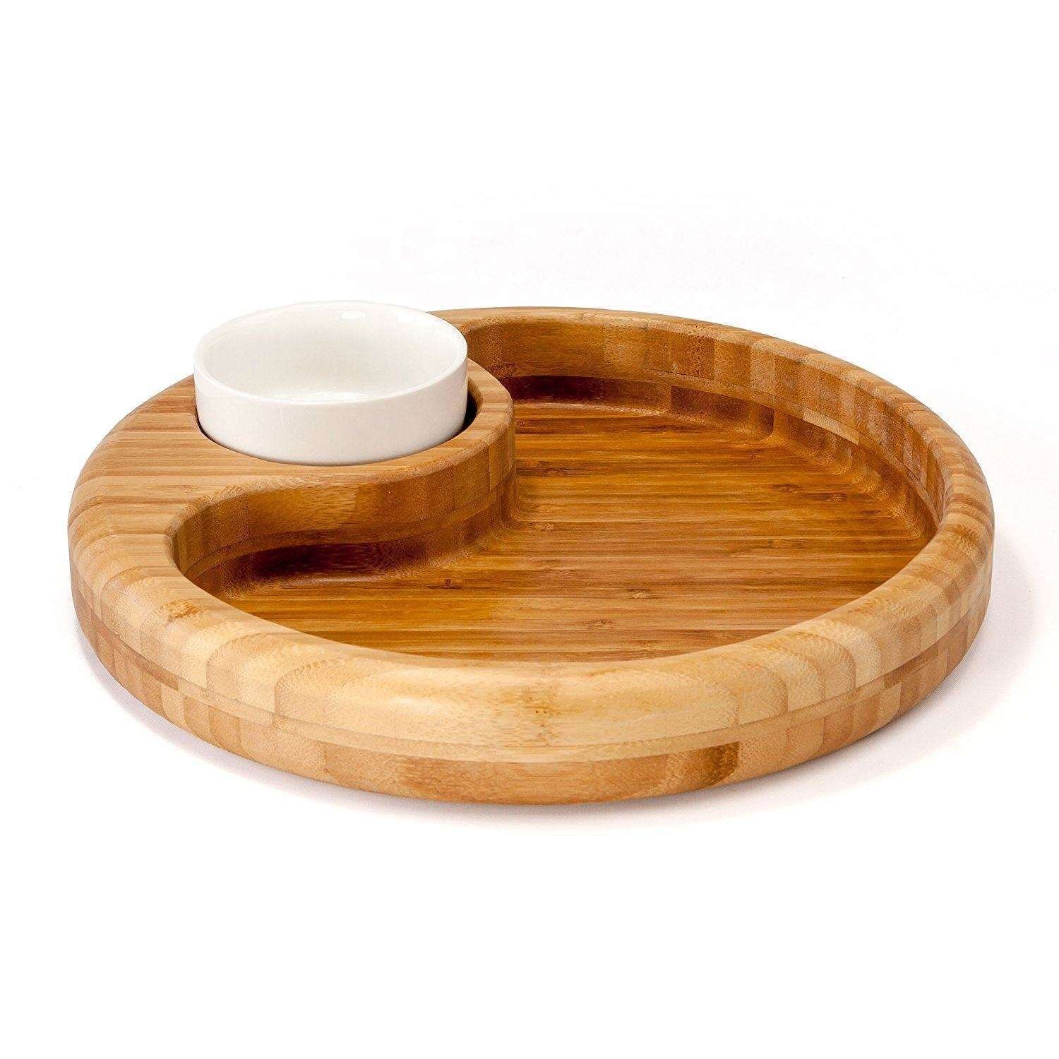 Natural High Quality Hot Sale Round Shape Bamboo Chip And Dip Tray With Ceramic Bowl