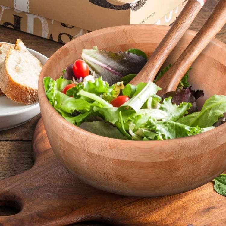 Japanese Style Kitchen Round Mixing Bow Stackable 3 Pcs Eco Friendly Bamboo Salad Bowl Set For Serving Fruit Rice Pasta Soup
