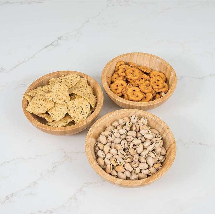 Custom Food Preparation Wood Small Fruit Serving Bowl Reusable Eco- Friendly Bamboo Salad Bowls Set